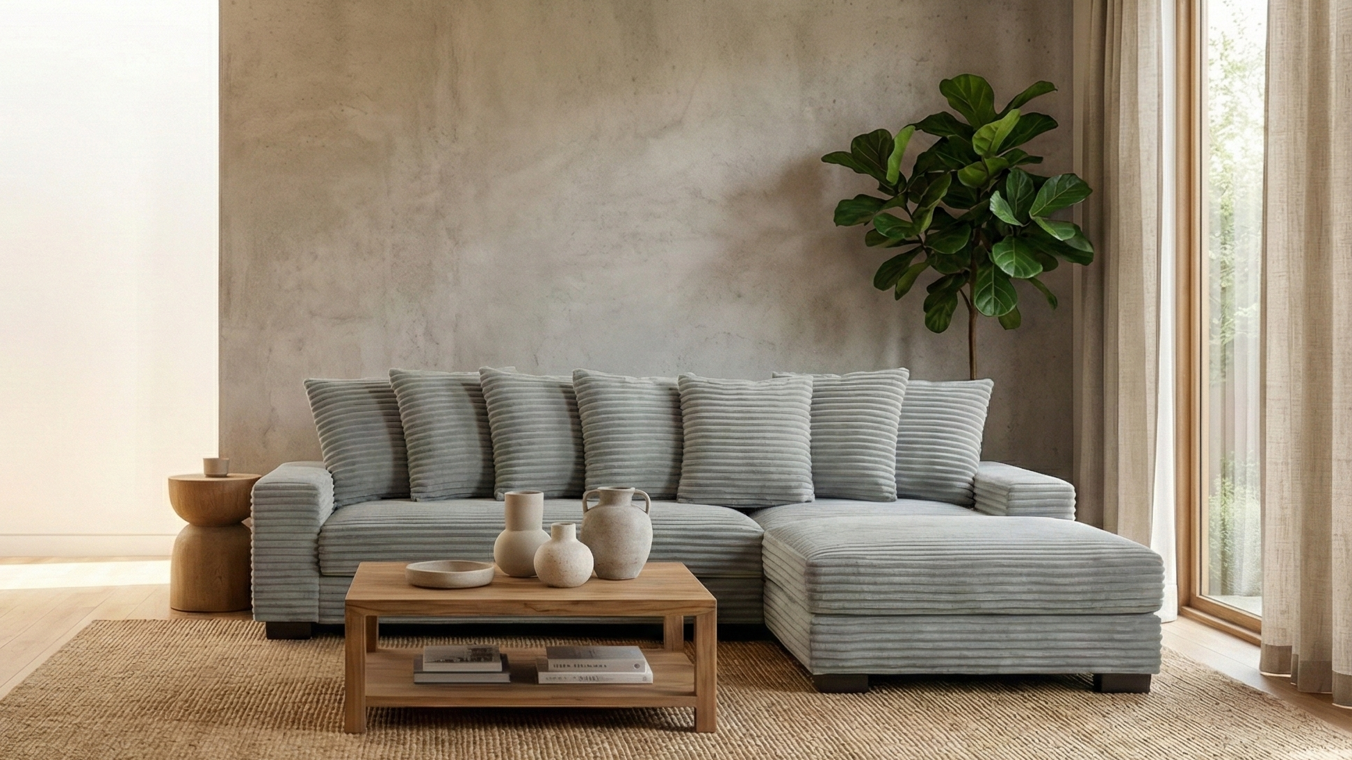 SnugCord conçoit et distribue des canapés en velours côtelé destinés à l'aménagement des espaces de vie